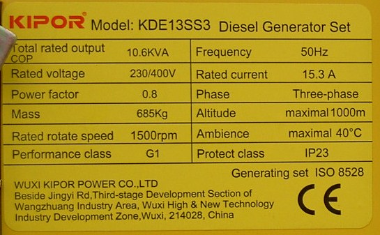 > Kipor KDE13SS3
